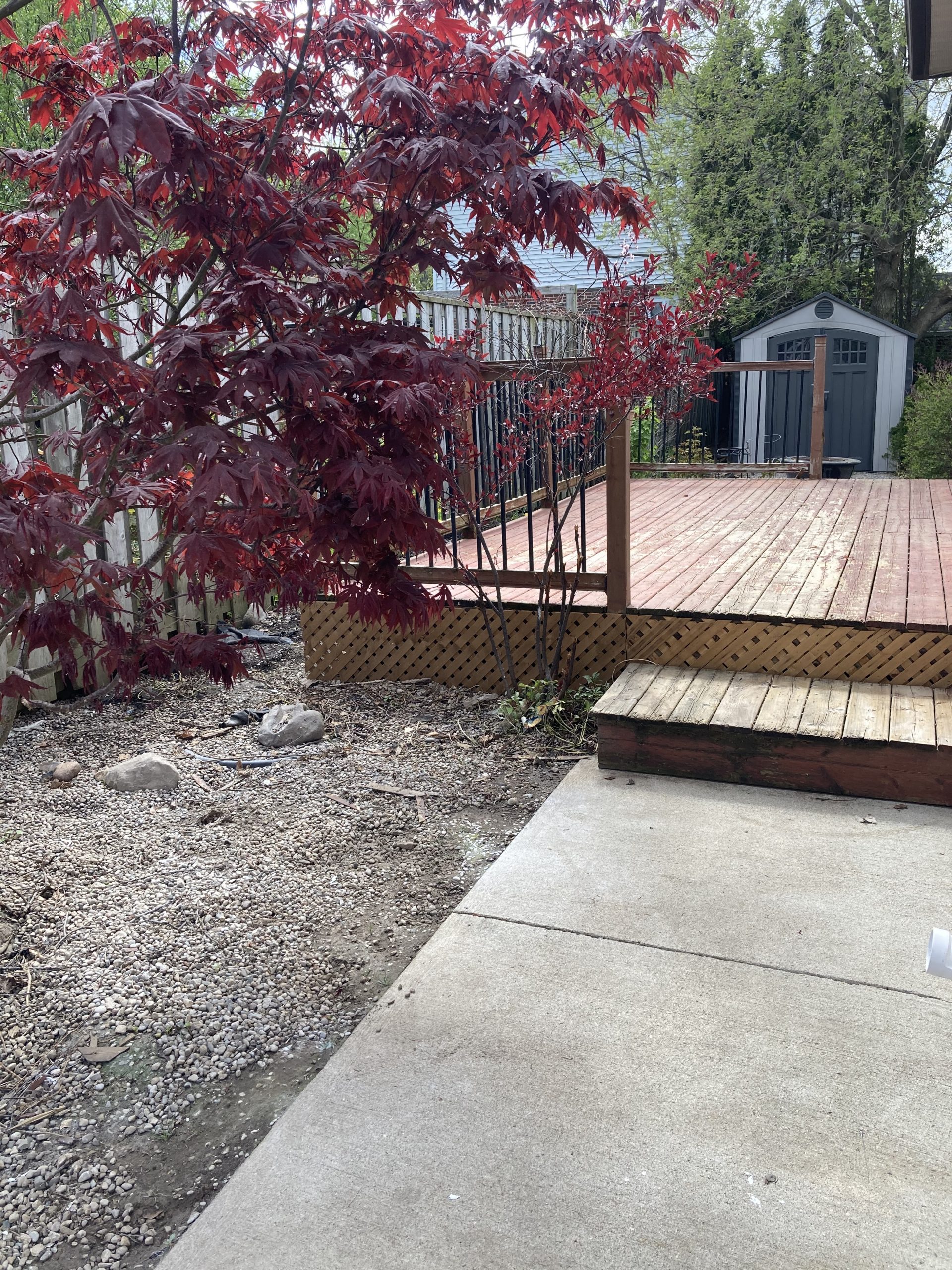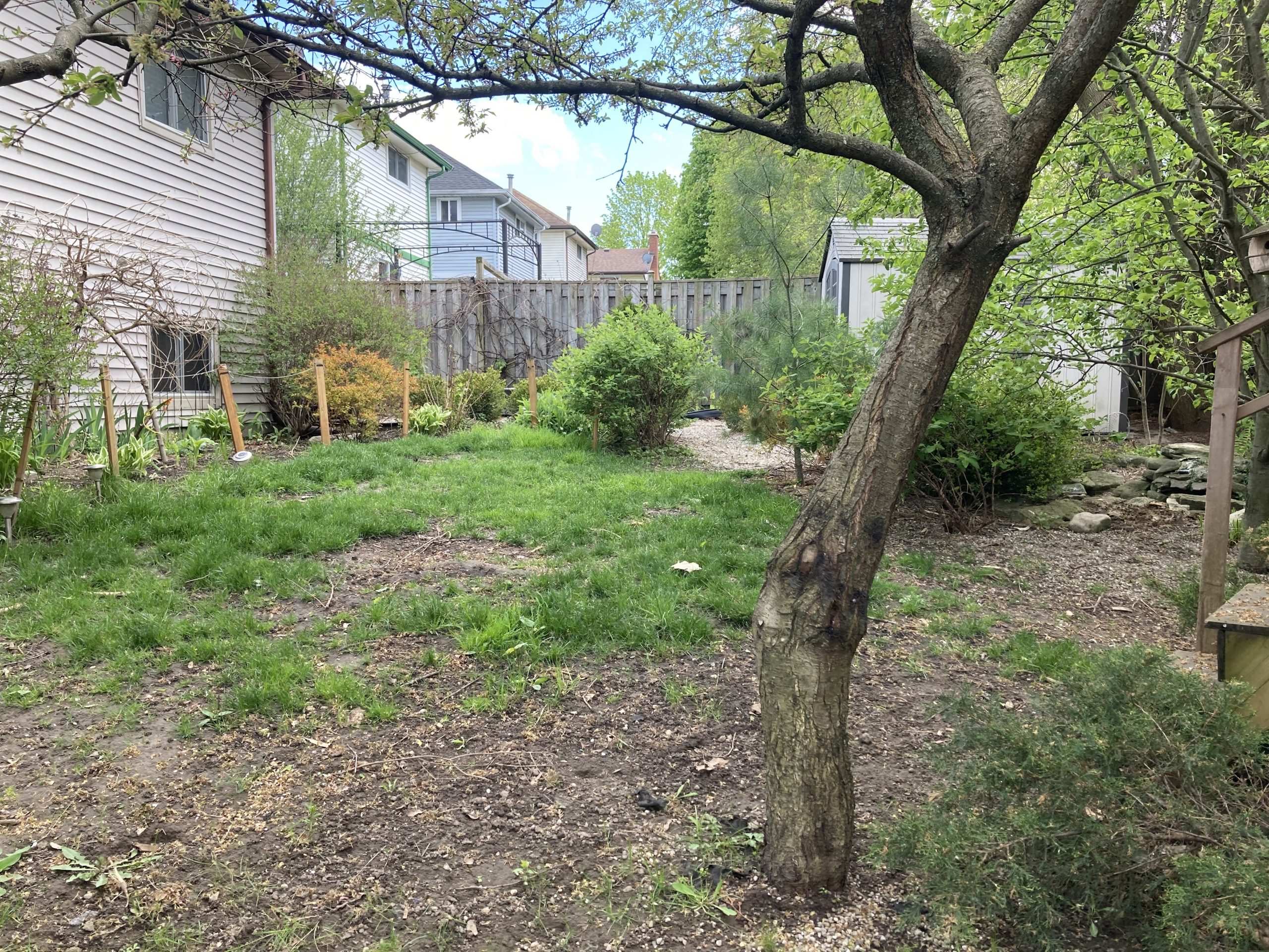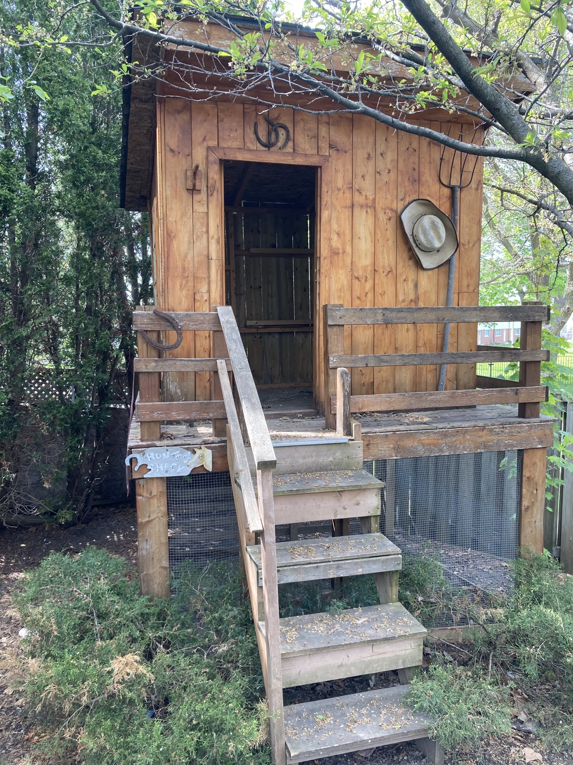Fully fenced-in yard with a deck, plenty of greenery and a treehouse! 3-car driveway parking on a corner lot.